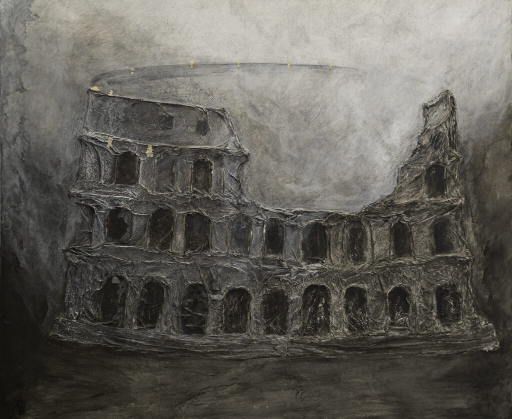 Parrà evidente a chiunque conosca le tappe del già lungo percorso della pittura di Masucci, che le sue immagini scaturiscono da un doppio registro della coscienza: lo stadio dell’angoscia dapprima e quindi lo stato dell’estasi. Questo è l’ambito vero del suo percorso creativo che si ripete ogniqualvolta il pittore è al lavoro, ma che ogni volta trova sbocco in esiti necessariamente variati ai fini di dare soluzione al malessere che il confronto con la storia produce. In altri termini, se la barriera sottile della storia e la sfida che la pittura del passato avvita sull’artista odierno provocano lo stress connaturato alla creatività, sarà una qualità distintiva del pittore di potenza superare tale angoscia con quella levità propria dello stato di grazia che diciamo Bellezza.