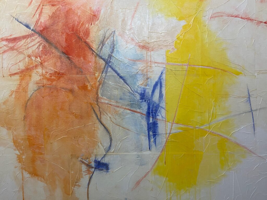 Non è questo il solo motivo ricorrente che m’induce a definire l’opera di Masucci un’appassionante pittura delle scaturigini dove tutto è moto e metamorfosi. Con evidenza essa sa orchestrare i più diversi registri del linguaggio pittorico con un’alta temperatura sia emozionale sia mentale che le consente anche di dominare le differenti suggestioni spesso contraddittorie che l’arte dopo le avanguardie moltiplica oggi presso gli artisti.