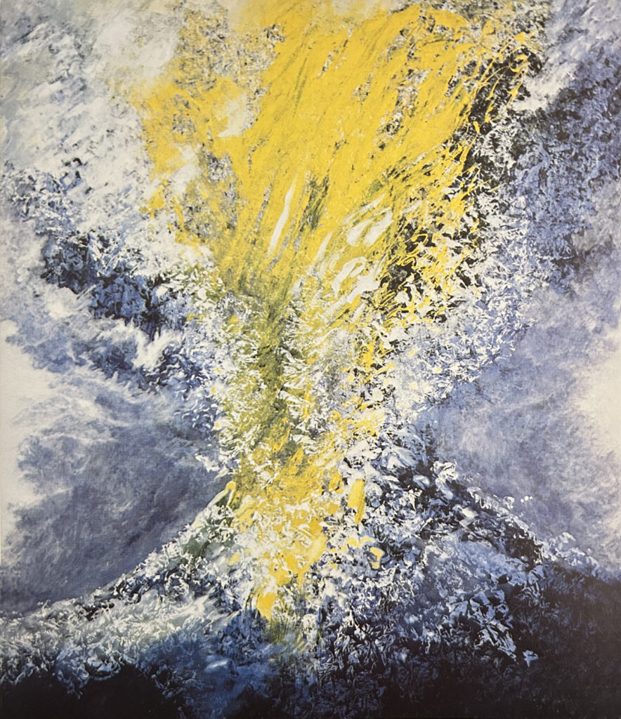 Come pittura di figure, l’opera privilegia le risonanze dell’inconscio che le sue scene di onde, di gorghi, di luci arcane, di acque notturne, di corpi danzanti, di naufragi, di sprofondamenti, di eruzioni telluriche, di pulviscoli spiritati o magari miraggi suscitano in ognuno di noi. Come pittura di superficie, essa mostra la strumentazione formale dei suoi mezzi tecnici attraverso un’esecuzione immediata, felice e rapita.