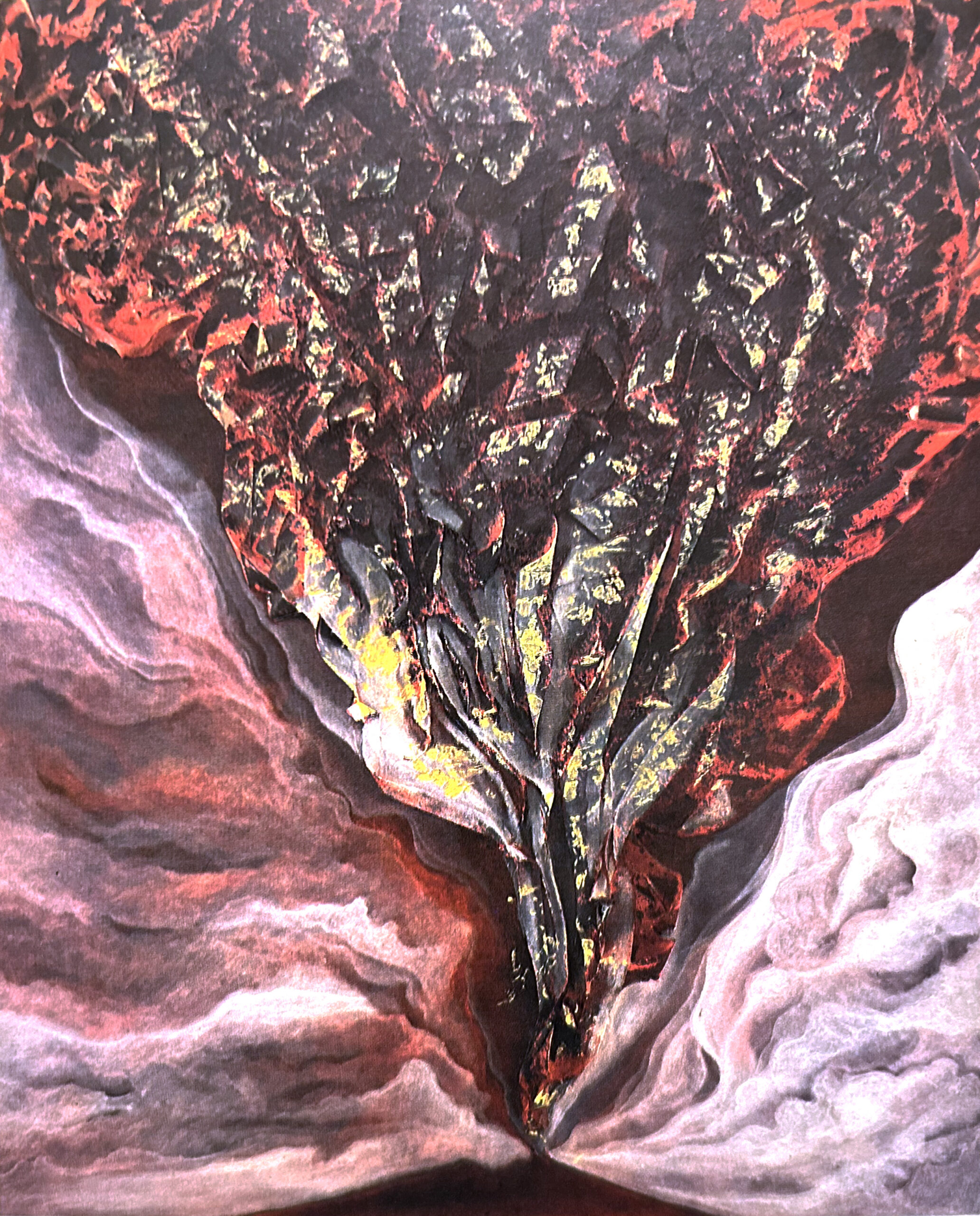 Non si confina al solo cerchio della natura, a quell’eruzione del Vesuvio che occupa con le sue polveri animate un intero ciclo di quadri, ma torna anche, questo sgorgo eruttivo, nella sfera dei fenomeni psichici, quali sono adombrati dalla serie delle « Porte», e persino si estende, questa magmatica epifania, alla rappresentazione a caldo della sfera erotica nei più recenti quadri con corpi nudi.