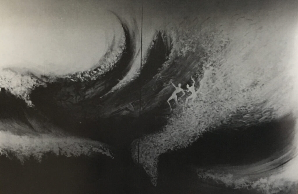 Il processo metaforico, ovviamente, si legge più facilmente sul piano della figurazione del pennacchio di fumo in albero e in donna alla sovrapposizione, cui si è già accennato, delle due serie tematiche, che infine, nell’ultima opera del 1985, si fondono inestricabilmente, facendo affiorare il Vesuvio dai flutti e trasformando il fumo nell’alta cresta dell’onda. Questo processo, investendo la struttura stessa dell’immagine, ne rafforza la dimensione temporale, nel duplice senso della durata nel tempo e dell’instabilità percettiva, come è evidente quando un effetto di aerea lontananza diventa, durante la lettura, un’accidentata presenza materica. Più in generale, si può dire che la pittura di Masucci è venuta crescendo proprio sul ritmo dei battiti che scandiscono l’esistenza umana, tra impulsi di gioiosa vitalità e cedimenti di improvvise paure, proiettandoli, però, sullo schermo dell’immaginario, in un gioco dove s’affacciano e si scambiano continuamente di ruolo le figure di Eros e di Thanatos.